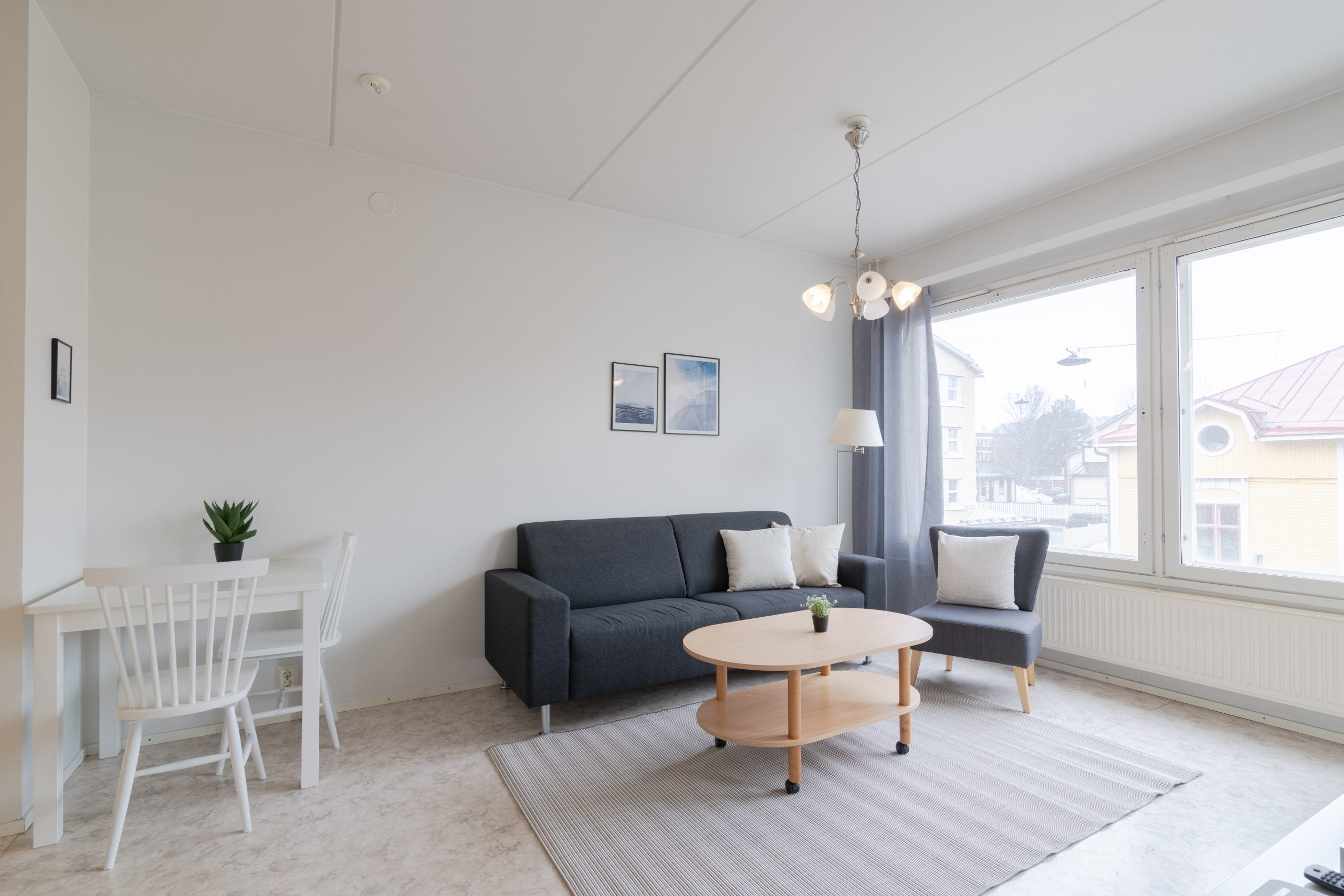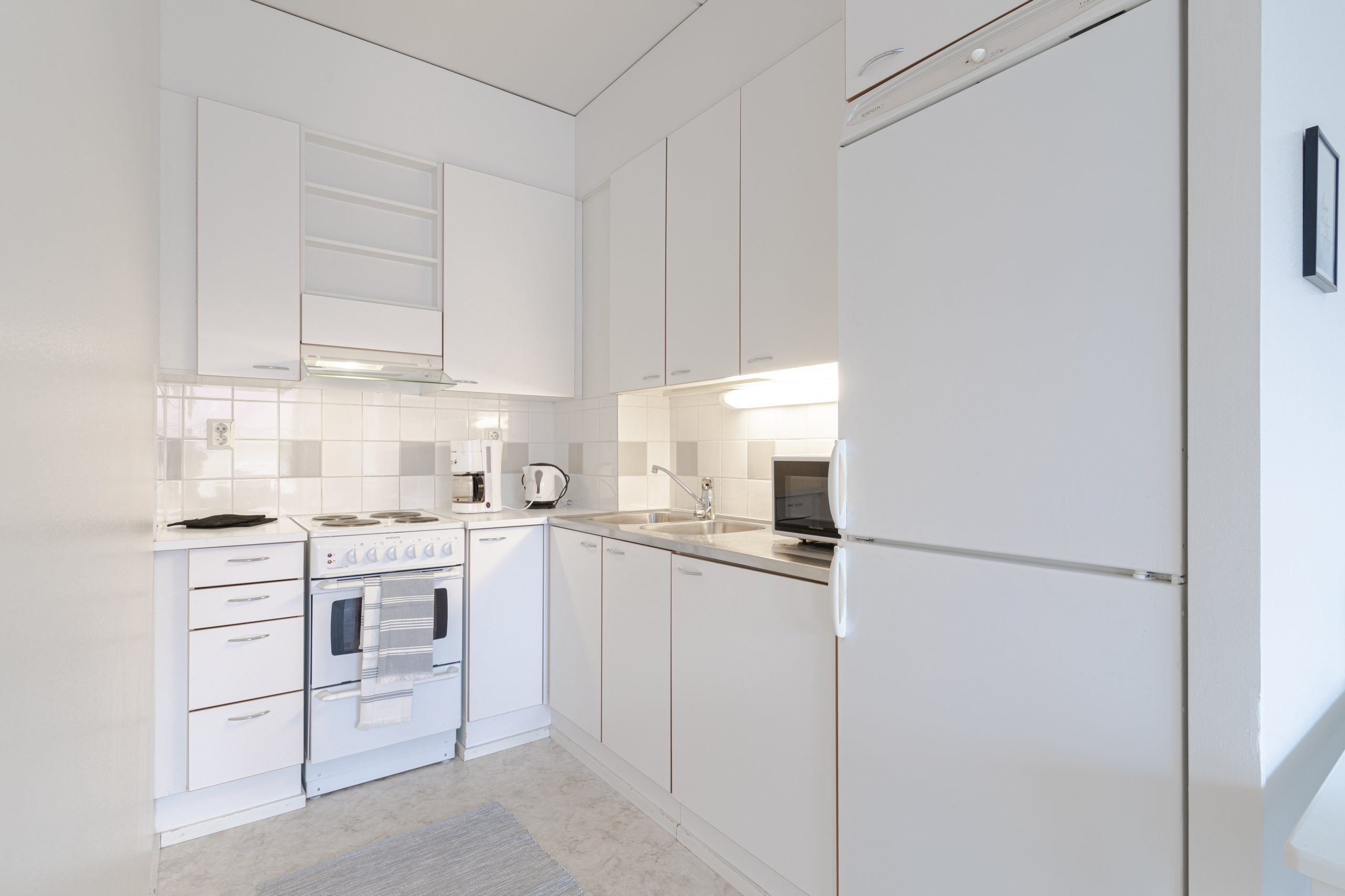 Asunnossa on kaikki peruselämiseen tarvittavat kalusteet ja tarvikkeet.