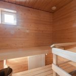 Saunallinen kolmio Melaniemessä, jossa on kaikki asumiseen tarvittavat perustarvikkeet ja kalusteet.