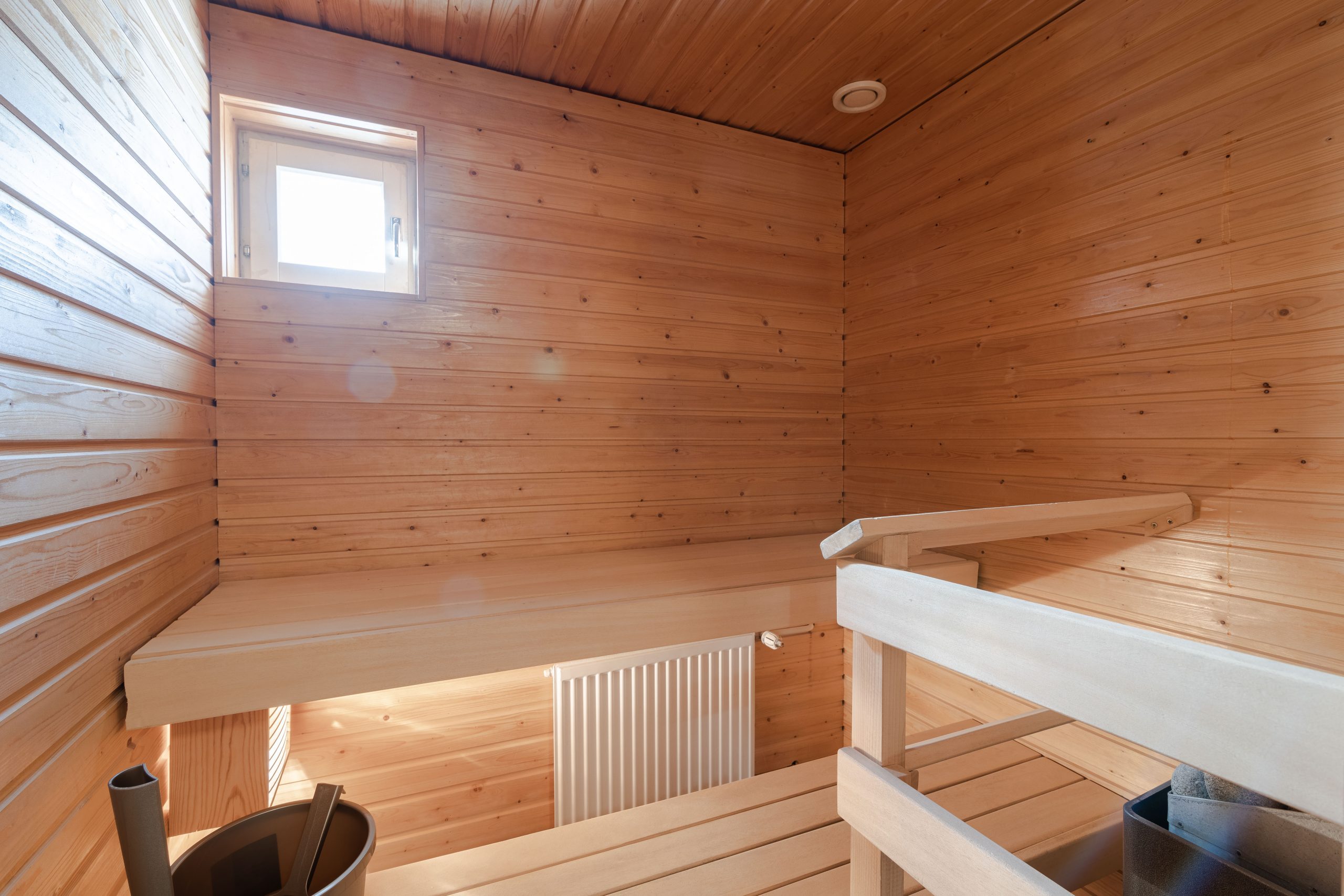 Saunallinen kolmio Melaniemessä, jossa on kaikki asumiseen tarvittavat perustarvikkeet ja kalusteet.